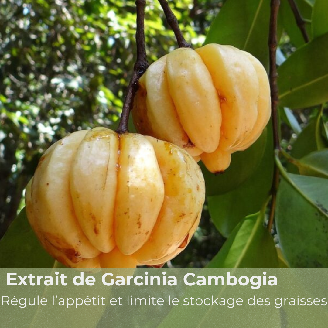 - Garcinia Cambogia – 20 mg : aide à limiter l’appétit et favorise la sensation de satiété.