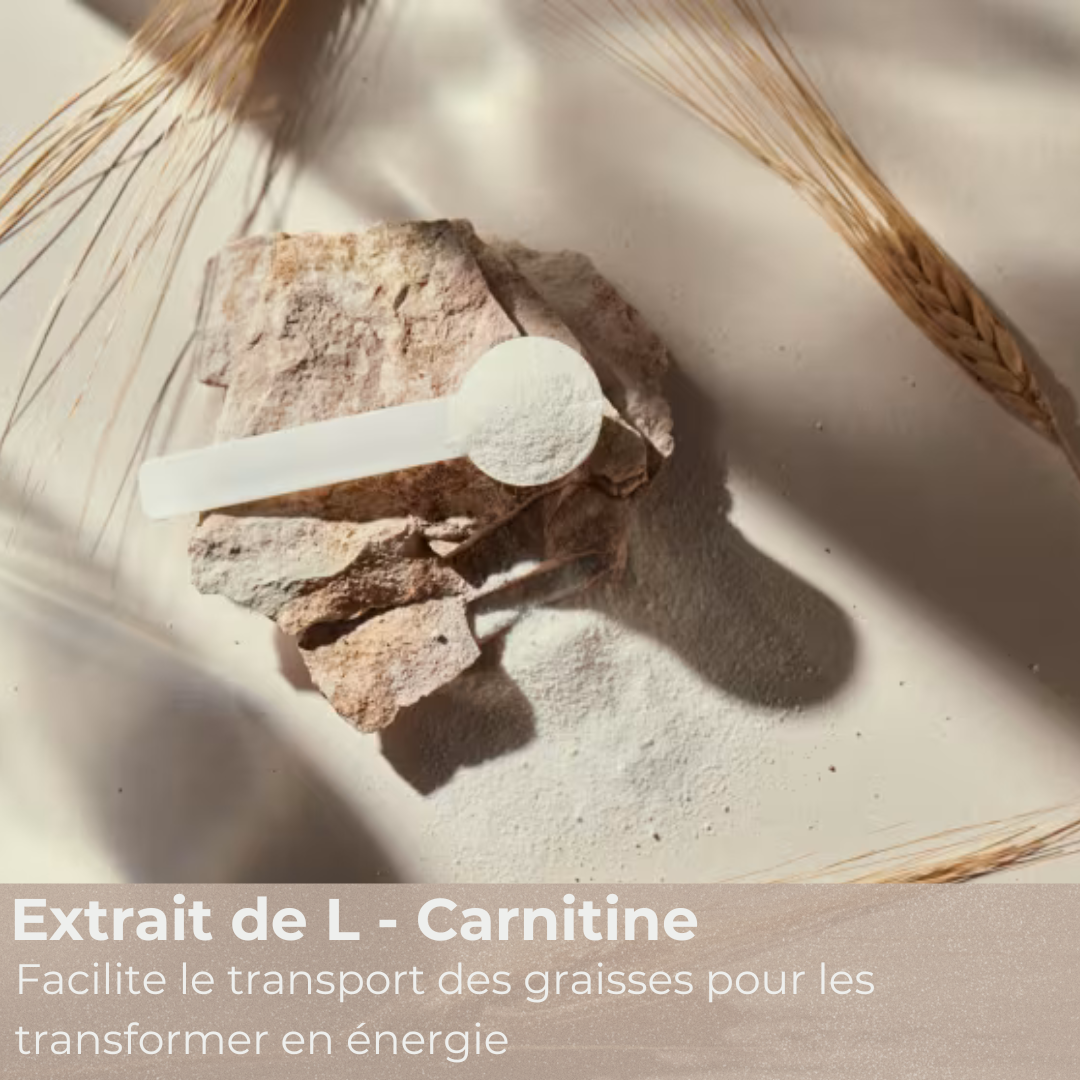- L-Carnitine – 15 mg : participe au transport des graisses vers les cellules pour être utilisées comme énergie.