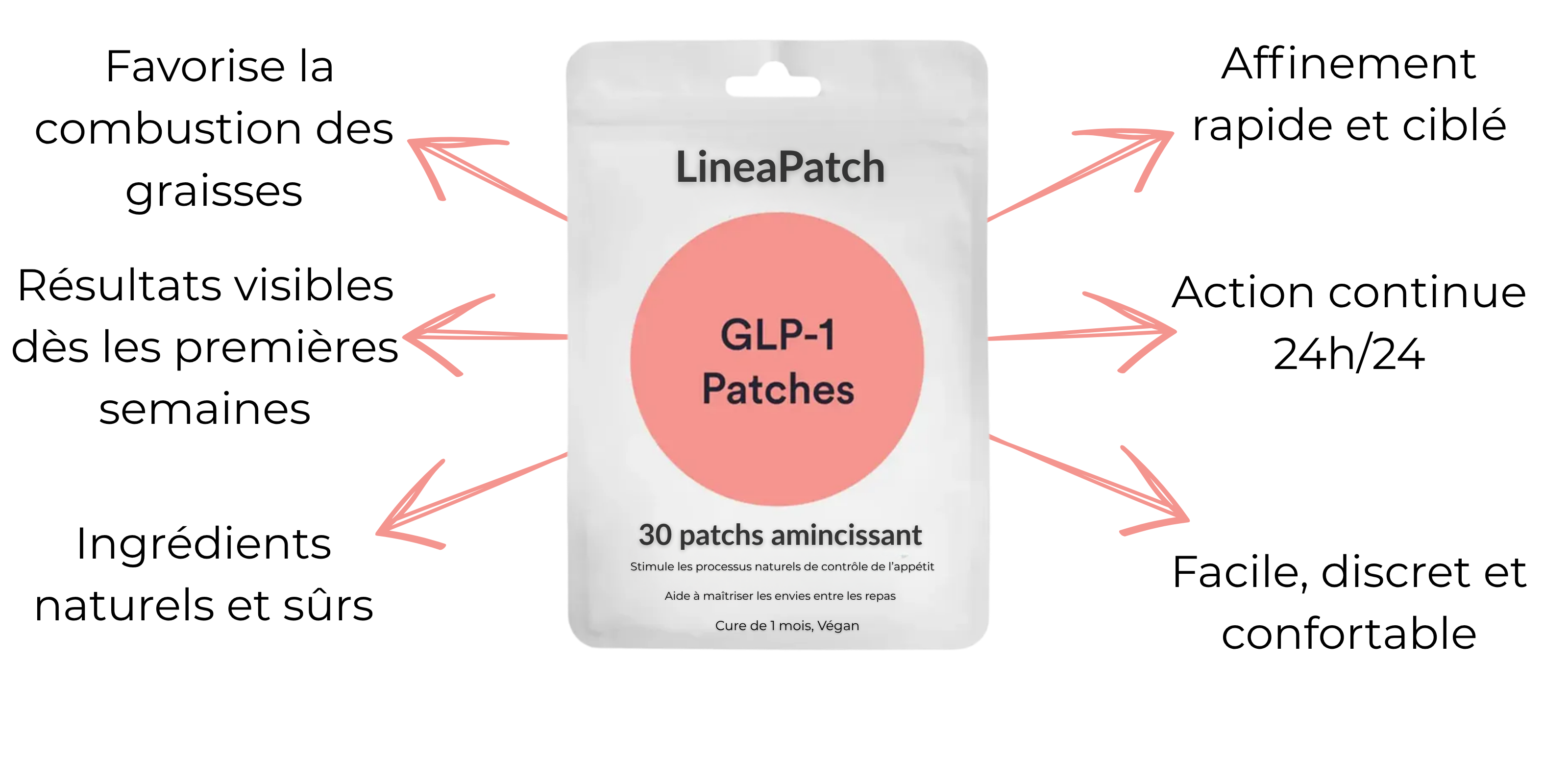 Fini les régimes frustrants et les privations ! Avec LineaPatch, vous collez simplement le patch sur votre peau, et la technologie GLP-1 agit pour réduire naturellement votre appétit. Vous mangez moins sans effort, vous ne grignotez plus entre les repas, et vous gardez vos habitudes alimentaires. C'est la solution la plus simple et économique pour perdre du poids durablement.