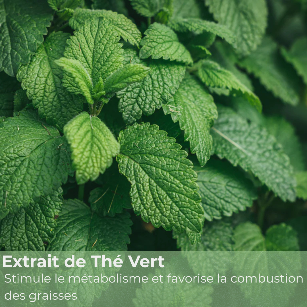 - Extrait de thé vert – 20 mg : contribue à stimuler la dépense énergétique et soutient la gestion du poids.